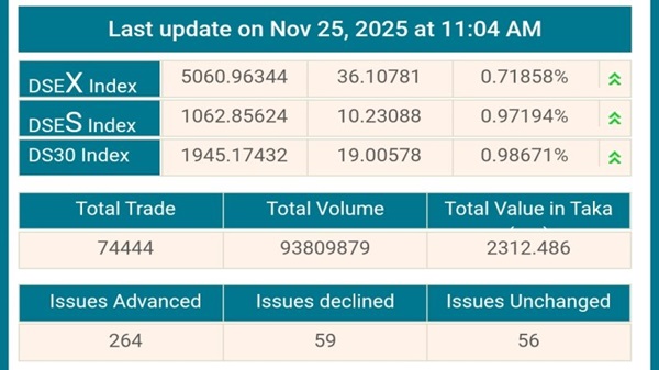 বিজনেস আওয়ার প্রতিবেদক: সপ্তাহের তৃতীয় কার্যদিবস আজ মঙ্গলবার (২৫ নভেম্বর) বিস্তারিত..
